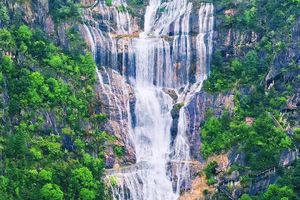 天臺山大瀑布是中國離城最近的大瀑布,緊鄰瓊臺仙谷,歷史上被稱為桐柏瀑布,又稱三井瀑布。桐柏山海拔高約800米,視野十分開闊。而瀑布匯聚溪澗之水,于桐柏宮旁經五梭溪飛瀉而出,景色十分壯美。歷史上,這條瀑布就是著名的一大奇觀。