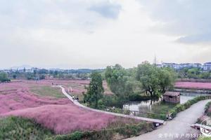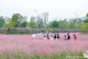 待到黃昏,整片亂子草像是加上了一層濾鏡
