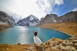 ????? 烏孫古道沿途的自然風(fēng)景非常迷人。沿途景點(diǎn)有九曲十八彎,中國最美村莊——瓊庫什臺,起伏綿延的草原,壯闊的龍脊,神圣的雪山,奇異的山崖。景色頗具夢幻。最美當(dāng)數(shù)天堂湖——阿克庫勒湖。它是高山湖泊,海拔3100米,由雪山、冰川環(huán)抱。緊依著阿克布拉克達(dá)坂.天堂湖深邃清澈,形狀如彎彎的月亮一般,靜臥在四面高山之中,偉岸的山峰倒映在如鏡的湖里。風(fēng)乍起,吹皺一池湖水......