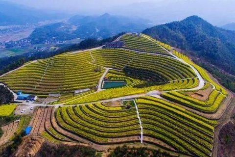 山上的油菜花開得正鬧,這里的山頂成了“金山頂”,
