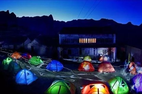 中午9點左右到達徒步的起點—前坑村。大家整裝出發,邊走邊拍,11:3后到達我們的起點:前坑村,午餐,沿途山徑幽幽。慢走慢拍片,安排住宿或營地,村里約有30戶人家,無雜貨店,有土雞,自來水,已通電。村落比較古樸,村民更是熱情。四周群山突兀,風景大氣,可以四周轉轉,取景拍拍,發發呆。!入夜,如果天氣晴朗,抬頭便可看見清晰的北斗七星,如近在眼前,讓久居都市習慣了霧霾的我們感慨不已。戶外的夜晚篝火晚會是必須的,回到原始的最初,人類驅趕野獸保持溫暖的本能,讓我們對篝火有一種發自內心的依賴。在此,特意為大家準備了熱鬧的篝火晚會,大家圍著熊熊烈焰唱歌跳舞,好不熱鬧!?