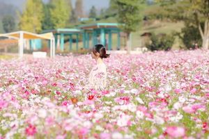 花海的線條勾勒極簡的圖案,姑娘們的柔美加入了弧度,隨風(fēng)依依的動作集滿了秋日無盡的婀娜幻想。