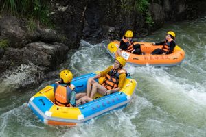 13:10-15:10我們前往臥龍峽漂流,這是一個位于距離建德航空小鎮8公里的臥龍峽漂流項目,其中有玻璃滑道和自然生態漂流混搭的潮流玩法,坐在皮劃艇上順流而下,湍急的水道、飛濺的浪花,在這里可以體驗不一樣的速度和激情。(提供熱水和姜茶)