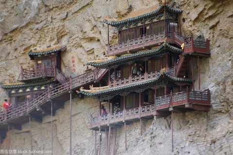 懸空寺,位于山西省大同市渾源縣恒山金龍峽西側(cè)翠屏峰峭壁間,原叫“玄空閣”,“玄”取自于中國道教教理,“空”則來源于佛教的教理,后改名為“懸空寺”,是因為整座寺院就像懸掛在懸崖上,在漢語中,“懸”與“玄”同音,因此得名。建成于公元491年,是佛、道、儒三教合一的獨特寺廟。“懸空寺”建筑極具特色,以如臨深淵的險峻而著稱,素有“懸空寺,半天高,三根馬尾空中吊”的俚語,以如臨深淵的險峻而著稱