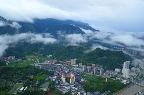 ? ? ? 青山如黛隱藏在云霧之中若隱若現(xiàn),給人濃濃的神秘感,充滿了古代的氣息,真的如夢如幻,恍若來到了仙境。這取景自溫州文成劉伯溫故里景區(qū)——百丈漈瀑布。