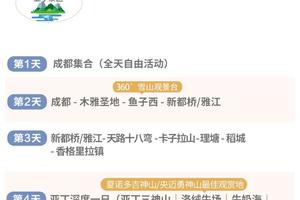 后翻越海拔4298米的折多山口,經(jīng)康定、瀘定沿成雅高速返回成都統(tǒng)一散團(由車上游客協(xié)商一致送至統(tǒng)一散團點,若協(xié)商不成則由司機送至三環(huán)內(nèi)就近地鐵站散團),結束本次愉快的旅行。由于川西地區(qū)路況復雜,山道狹窄,有可能因為堵車而發(fā)生延誤,請大家盡量預定第二天返程的航班或車次。