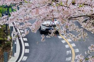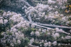 櫻花盛開之際能遙望發(fā)夾彎櫻花公路