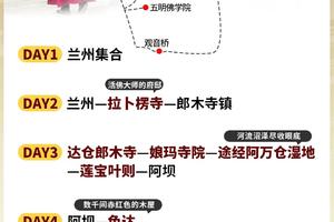 【景? ? ? ?點】所列景點首道大門票:拉卜楞寺,甘肅達倉郎木寺,蓮寶葉則,九曲黃河第一灣,花湖(門票+景交),扎尕那。