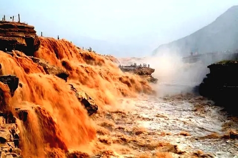 午餐后驅車開往國家5AAAA景區【黃河壺口瀑布】位于山西省吉縣西部南村坡下,地理位置為北緯36°8′10″,東經110°26′40″,海拔448.1米。以壺口瀑布為中心,北至馬糞灘,南至小船窩,西至峽谷地域,東至人祖山,總面積100平方千米。東距吉縣縣城45千米,距堯都臨汾市169千米;西距陜西宜川縣城49千米,距革命圣地延安170千米;北距山西太原387千米;南距陜西西安449千米。
