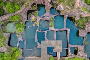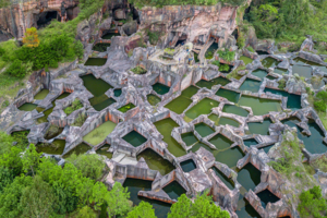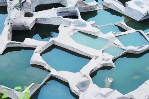 野人洞不僅有千年斧鑿后的“殘山”奇跡,也有山野穴居的粗曠和寫意。石窗上鏤空的花鳥、錢幣等吉祥圖案,配合著的凹凸的洞壁、碧綠的潭水,有種別樣的美感。