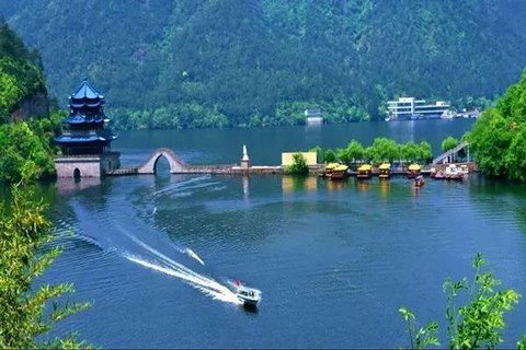 江邊立著一塊石坊,孫儷和鄧超來旅游時在此拍了合照。