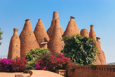 ??下午出發前往【彌勒東風韻景區】,車程30分鐘左右。在這里你將近距離的感受萬花筒藝術館、半朵云藝術館、主題公園等藝術建筑和美景;這里是彌勒最熱門的網紅拍照打卡地,建筑風格融合紅酒文化、彝族支系阿細人的火文化,酒瓶、火苗狀的城堡全部用紅磚砌成,因造型奇特而火爆網絡。晚餐我們將品嘗云南特色汽鍋雞。