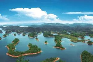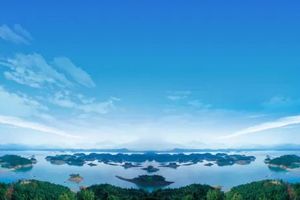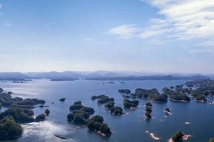 千島湖湖面開闊,一碧萬頃,島嶼棋布;大島如山,小島如船,個個清脆欲滴,像一塊塊半浸在湖中的碧玉。既似太湖的煙波浩渺,又有西湖的娟秀氣韻。