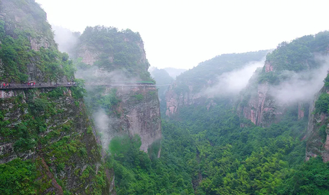 這里有浙江最長的玻璃棧道,就在懸崖峭壁上。向下望去,超級刺激!