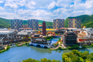 太湖古鎮占地面積約500畝,總建筑面積達66萬平方米,其中對外可出租的商鋪面積約10萬平方米,古鎮分為東西兩個片區,分別名為童家村和江夏村,地下兩層配置有4300多個停車位。