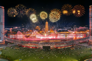 當夜幕降臨,整個古鎮被燈光裝飾得美輪美奐。水上歌舞表演、音樂噴泉水舞秀、大型煙花秀,一場場視覺盛宴,讓人流連忘返,已成為南太湖夜游新地標,并成功入選第二批國家級夜間文化和旅游消費集聚區、2023年度省級特色商業街(區)。