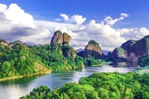 ? ? ?早上約定時間車赴世界地質公園、國家自然文化雙遺產地、AAAAA級旅游區—【龍虎山風景區】(約2小時)。 乘觀光車,游覽【象鼻山景區】(約30分鐘,旺季特殊情況車覽);乘【龍虎山竹筏漂流】(含竹筏約40分鐘),遠觀江南奇村--【無蚊村】,可觀兩岸十大美景,云錦峰、道堂巖、文豪峰、蘑菇石、僧尼峰、仙桃石、蓮花石、玉梳石、丹勺巖等,【仙女巖】。 ??