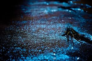 藍眼淚是一種在海底生存的微生物,靠海水的一種能量生存,它的身體內有一種發光腺的奇特構造,在隨著海浪被沖上岸時,就會產生淺藍色的光。