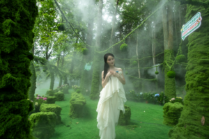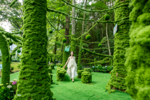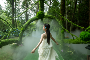 Tips:建議穿淺色系衣裙,搭配草編包、魔法棒道具更出片!光影透過樹冠灑下時最具童話感!