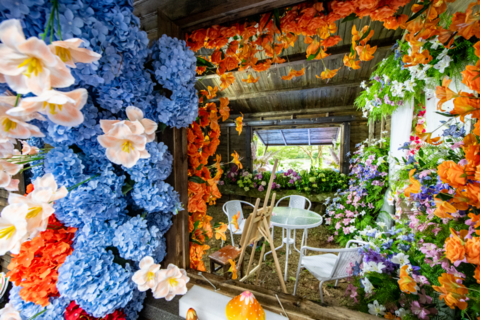 睡蓮、鳶尾、繡球花瓣像打翻的調色盤,