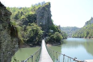 天燭仙境,天燭湖集雨面積32萬平方公里,蓄水量達305萬立方,湖長3公里之多,時寬時窄,寬至幾百米,窄至幾米,彎彎曲曲,向幽谷延伸,湖水清純, 碧波蕩漾。乘龍船、快艇,游客可飽覽古樸的電站和雄偉的大壩,欣賞沿湖風光。