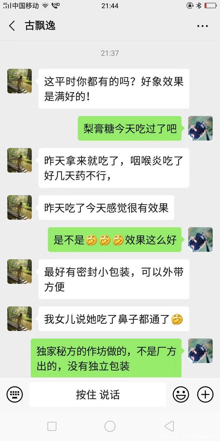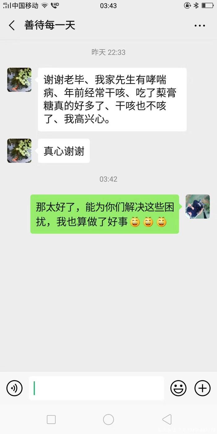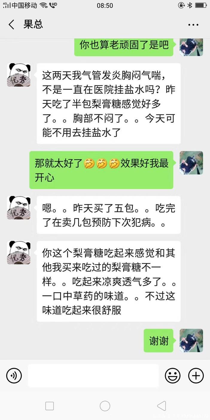梨膏糖至今售出30000余包,全年有售,對于咽炎,咳嗽,痰多,肺部不適等都有很好的效果,藍客戶這么評價!!!